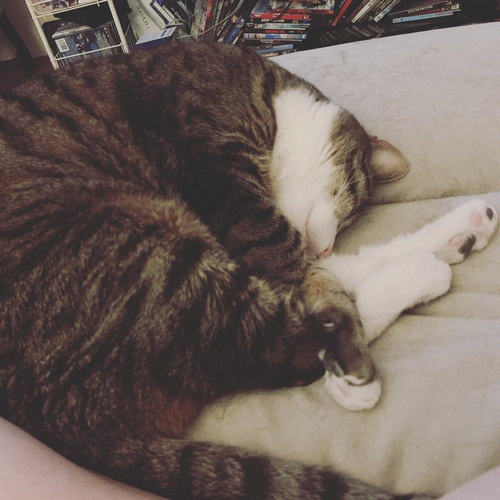 And then we have Summer Squash. An orange tabby cat who used to be feral. All our cats are rescue cats, and they're good cats. Don't bite or scratch unless they're being playful. Sawyer likes to follow the light on my iPhone when I'm using it in the afternoon. Belle sleeps with me, Maureen sleeps with mom on her head. Without my babies, I fear the worst. They have been emotional blankets since dad's death. And Sawyer, unfortunately, along with Summer, was there with him when he passed. They have deep emotional trauma and PTSD, like me who found him after we all woke up in the morning. Life takes awful turns, but we're that much stronger together.