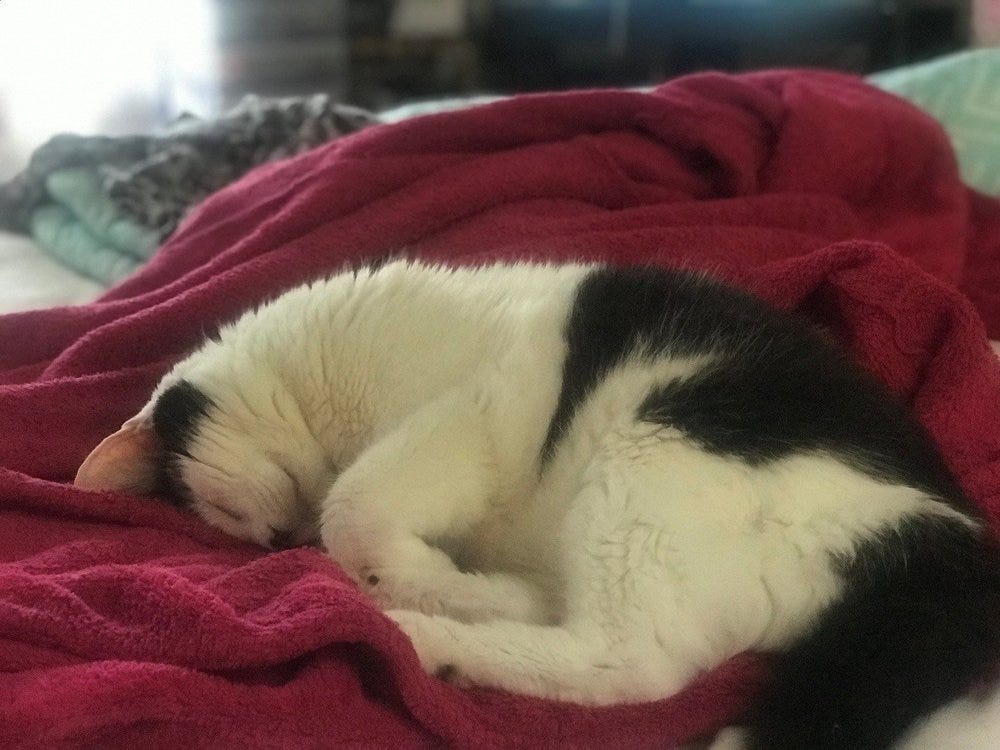 I remember when the kittens were born, I was awestruck. I was about 9 years old at this time, and wanted nothing more than an animal to be my best friend. The four tiny kittens snuggled, slept together, and spent all their time together. We would periodically let them out of the room they were born in to explore the house in small intervals, and starting from the very beginning, Chubba was the kitten who spent the most time with me. The other kittens seemed to pick on him as they started to get old enough to run around the house, and I would build little forts for me and Chubba to hide in. I think as an older cat he may remember that time fondly, because now at age 18, there is nothing more that he loves than being under a blanket with me, safe from the world just like when he was a kitten.