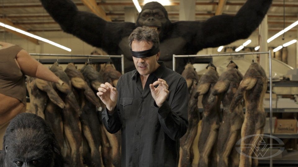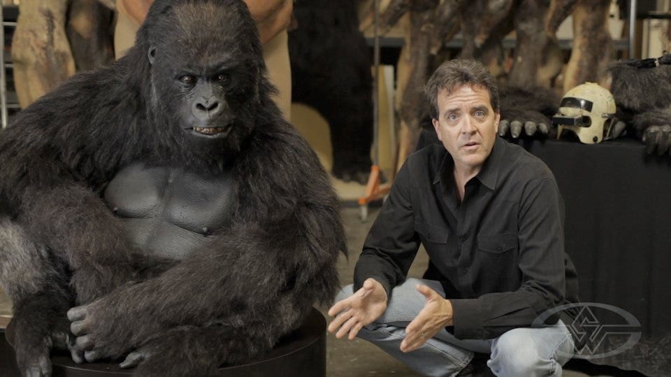 Tom Woodruff Jr., whose credits including Jurassic World: Fallen Kingdom, The Terminator, Jumanji, Mortal Kombat, and a bulk of your iTunes movie collection, has spent what for me would feel like an eternity in a stuffy, hot costume. At times, a gorilla suit. Blindly, really in the meaning of blind, unable to see outside the suit, hired for multiple roles in gorilla suits!