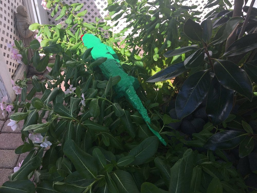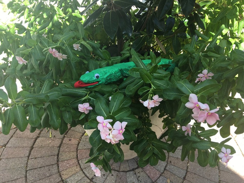 My garage monster goal was a green anole based on this real one I met a while back, documented in a journal entry.