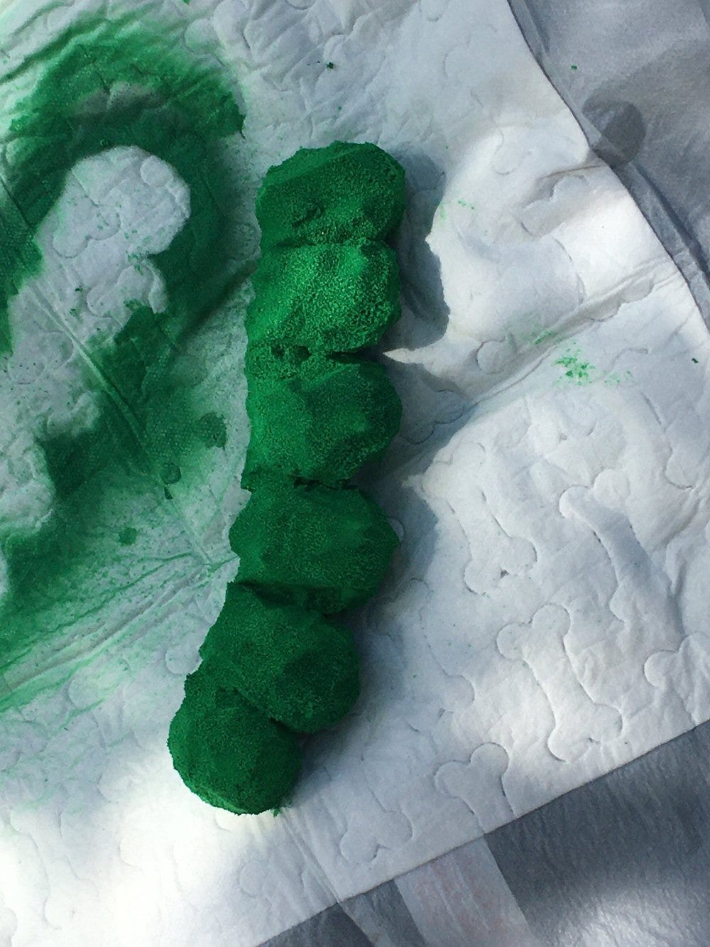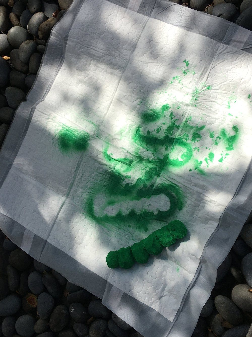 I reshaped more with sanding paper. Spray painted the bug on a puppy pad outside. Let him dry.