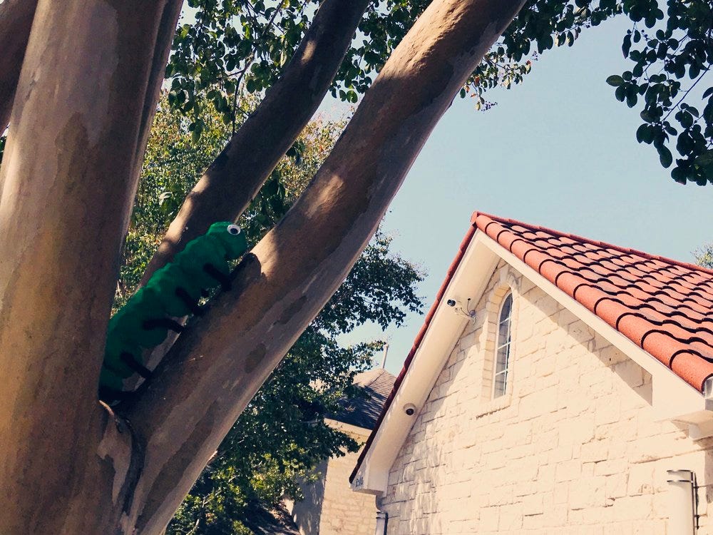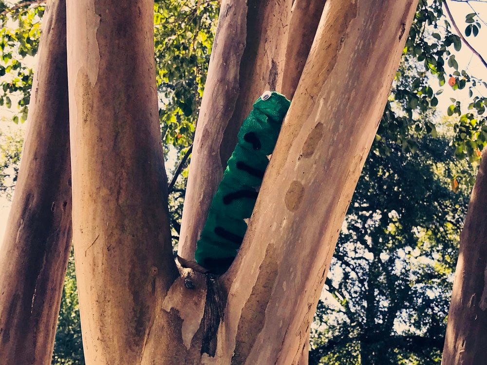 Up and up and caterpillar climbed a tree yesterday morning! He watched me from above. Sneaky guy. Very shy, he doesn’t talk much.