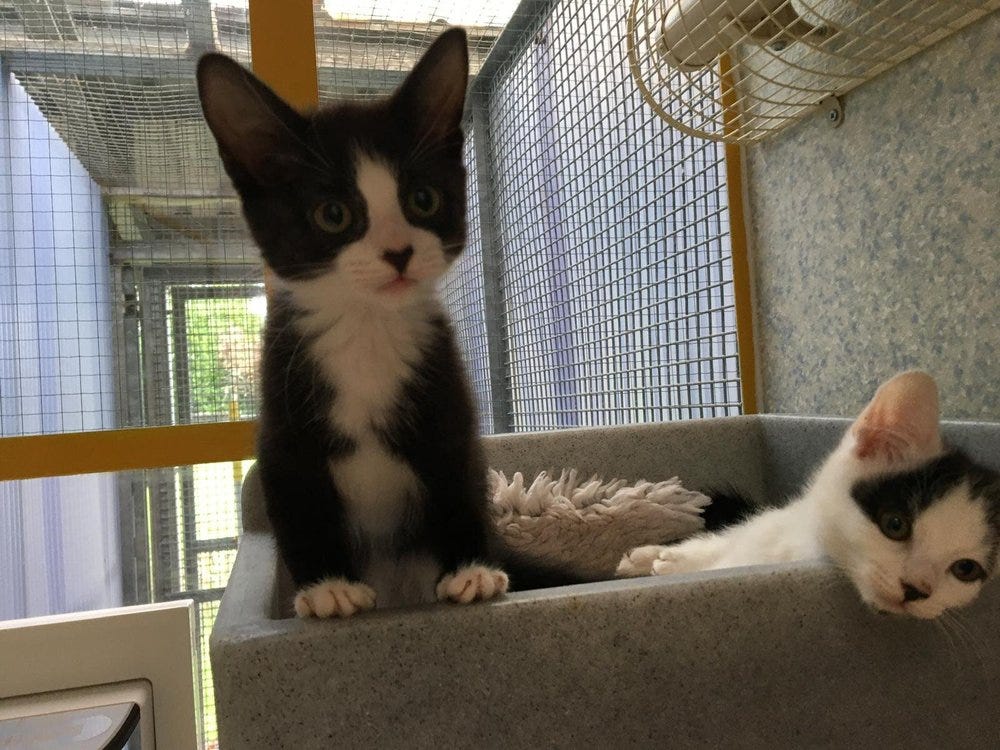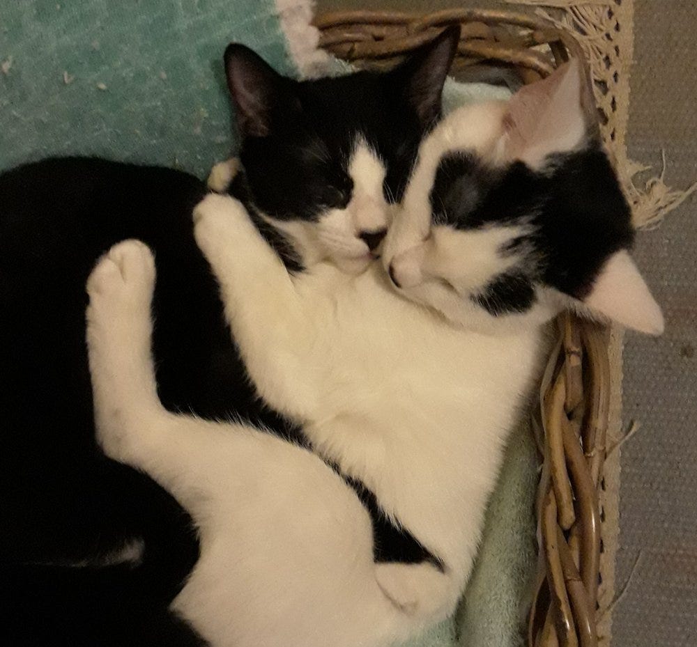 One day, a pair of tiny kittens were brought to the Centre. They were brothers, and had been named Bob and Roo because they had something wrong with their front left legs, and walked strangely (Bob up and down, and kangaRoo). The vet examined them. Their elbows are fused. No one knew whether, as they grew, they would need their ‘bad’ legs amputated, or what other problems could ensue, which would make rehoming them difficult. One thing was sure – we’d never learn anything while they stayed in their pen, so my husband and I took them home to see how they got on.