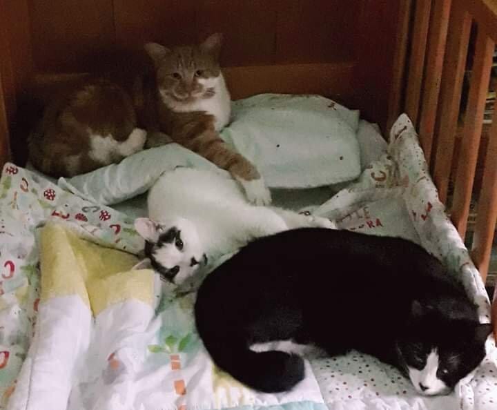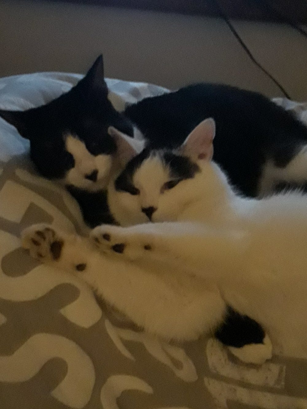 I’m writing this now, sitting up in bed, and all three boys and lying on top of my husband, purring. Oh, update – Roo is now trying to get on the keyboard…better go! hjsajfbjskkgjhslbcbjdkslhhjhjhjh…