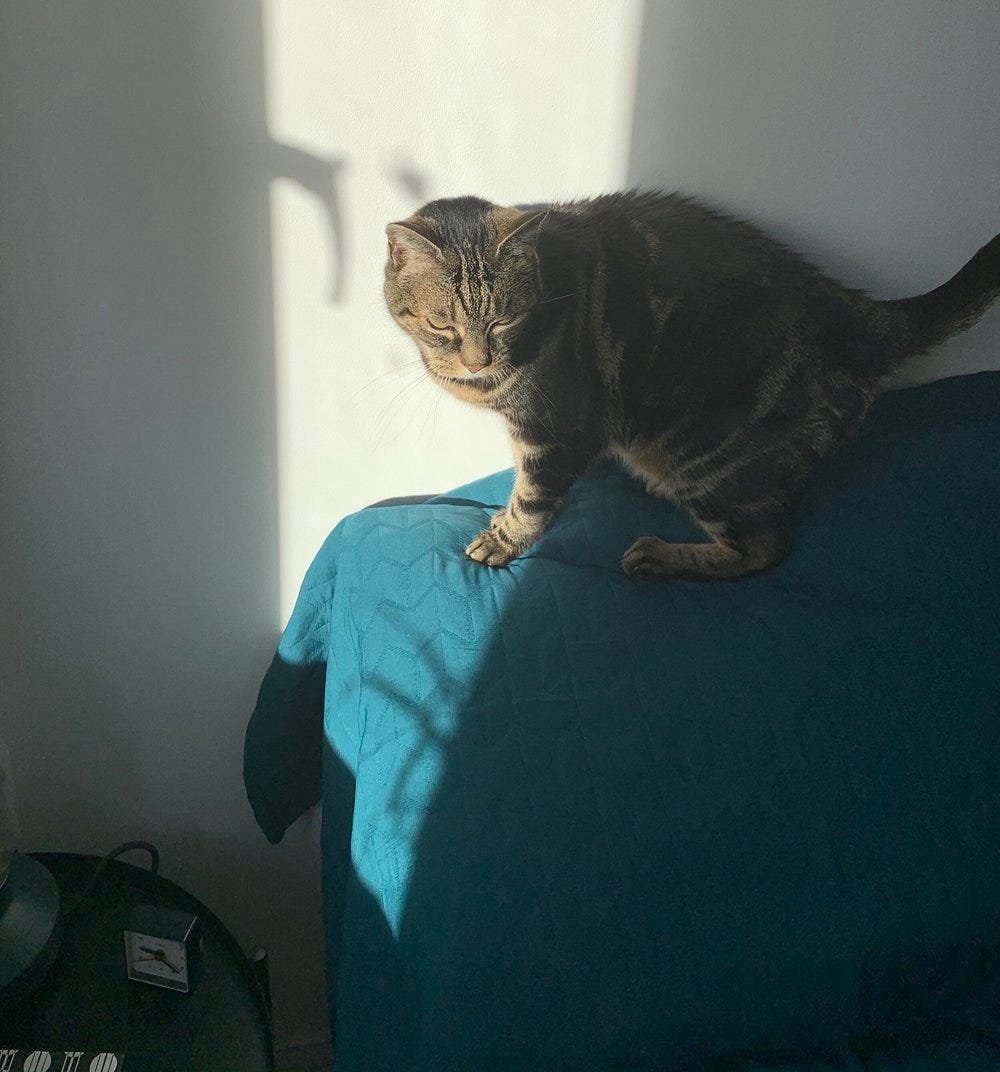 I love our cuddles and it’s nice to have him sit with me while I work but I’m not such a fan of him sitting on my laptop during lessons and meeting, his attempts to groom my hair, and his new favourite game of ‘let’s follow Ellie into the bathroom and sit on the bathmat and staring at her as she wees’. God love him but this cat doesn’t understand boundaries! Still, I would not change him for the world, and I feel blessed every day I get to spend with this weird, loud, needy ball of fur.