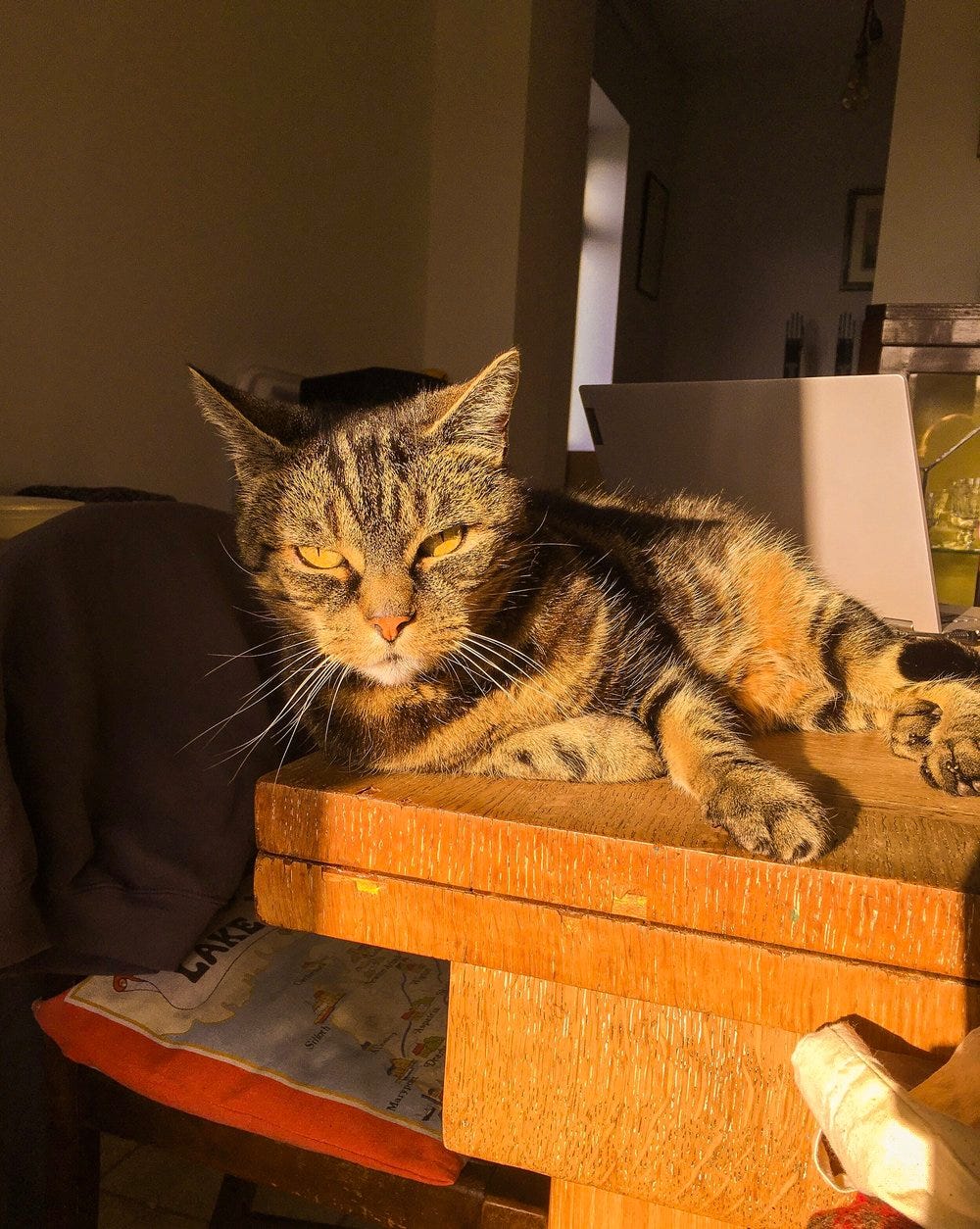 These days with the addition of my two young nephews to the family Benny has become very adept at moving through rooms unnoticed and frequenting quiet spots to hide until the small ones have left the building. Despite this most of the time he is a real tart and loves a bit of fuss. Since I moved back to my parent’s house (Thanks, corona!) he has decided that I am his one and only. Let the clinginess begin! He has become very vocal in his old age and will meow nonstop for what feels like an eternity until you give him attention.