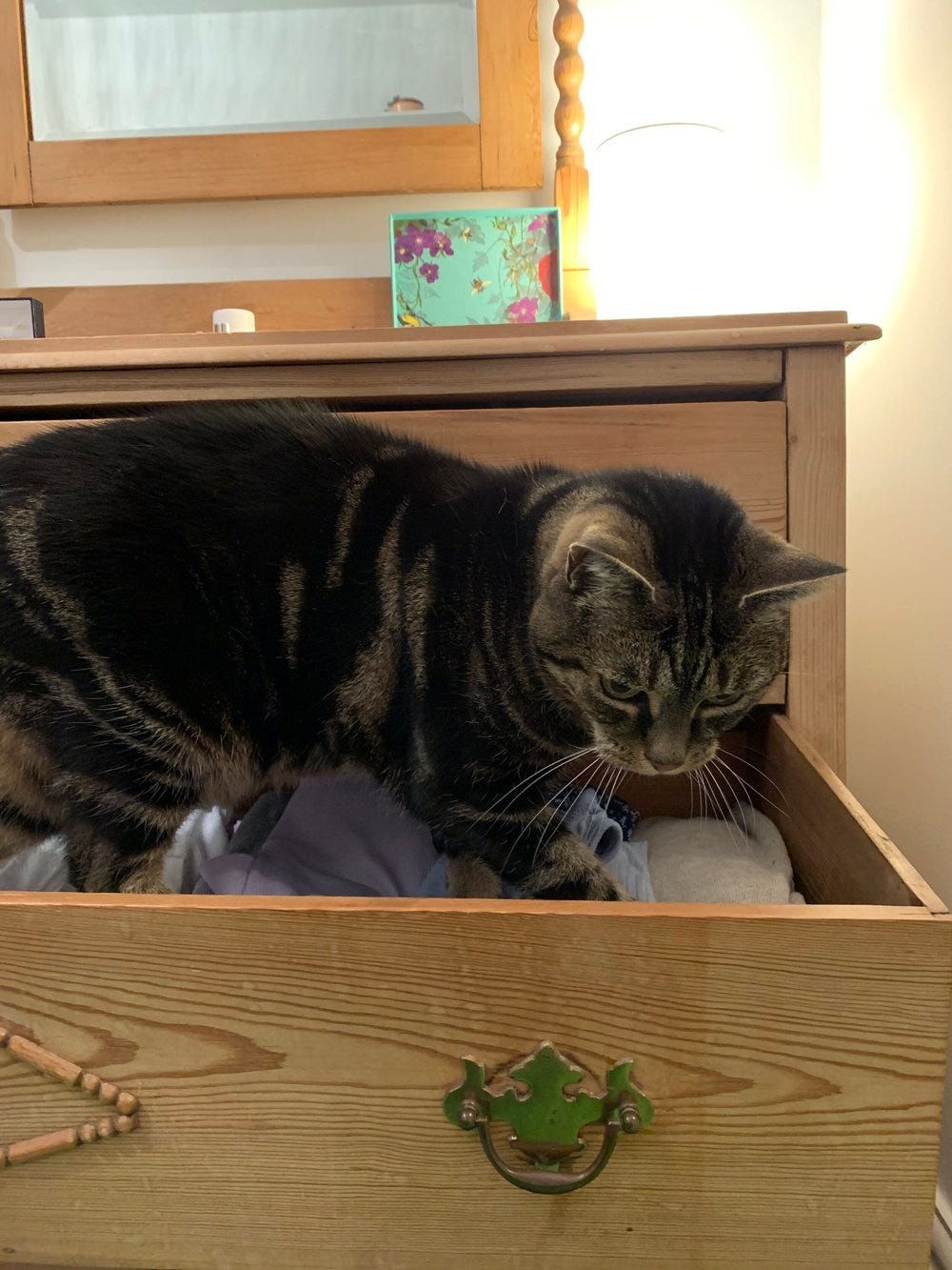 As he had become older, like most cats, Benny spends the majority of the day asleep in the comfiest and warmest spot he can find. Some of the highlights include: inside washing baskets, t-shirt draws, and even inside the very tumble dryer he was trapped behind as a kitten (just to clarify the dryer had finished and the door was open, clearly the clean warm clothes inside were too good to resist).