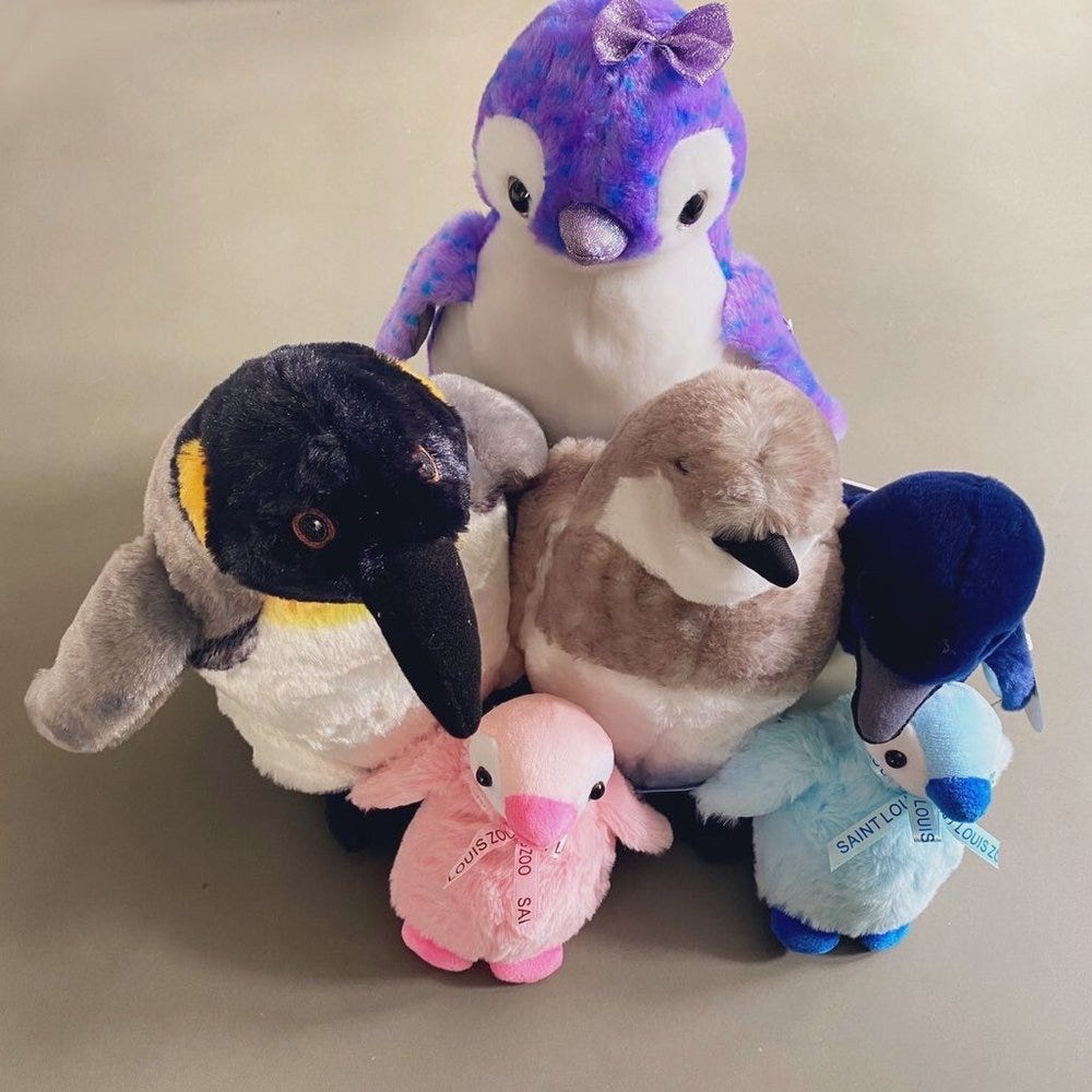 Hip hip hooray! New penguins from the St. Louis Zoo gift shop. Did you know the grey penguin chick looks like a real chick born at the zoo not long ago? The zoo is filled with nostalgia for me. Been going since forever!