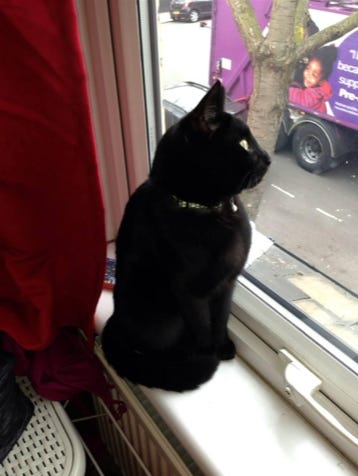 Eventually the Dream Team broke up, left our little Brixton flat and went our separate ways. Nichola back to Northern Ireland, Hayley to LA. Catface lived with me in West London for a couple of years whilst I auditioned for work and had lots of side gigs to keep the Whiska’s on the table. My then-partner and I moved back up North in Dec 2014 and took Catface with us in our old blue Micra. Though his sister Peanut sat calmly in her carrier, curiosity got the better of Catface somewhere just north of the M25 so he broke out of (and completely destroyed) his carrier so that he could sit on the parcel shelf and surprise the drivers behind us. I like to think he wanted to see the world.