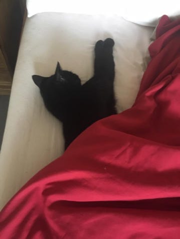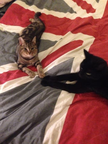 I lived alone during Lockdown #1 and I found their warm, cosy attentions very comforting. Head-bumps from The Big Cat and snuffly purrs from Peanut kept me sane when human contact was banned. Everyone who meets them loves them and find their unique personalities fascinating. They are the reason that some of the local children think I’m a witch and the inspiration for the name of my theatre company, Hellcat.