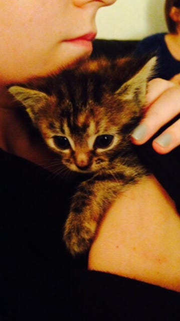 I was working as a Receptionist at Young Vet’s in Ealing (best side-gig ever!) when a litter of tiny kittens was brought in after being abused. Part of my job was to update the Facebook page with pictures of the animals in our care and stories of their progress. In every photograph I took, this tiny tabby was staring directly at me. I noticed she was the smallest of the kittens (about two-thirds of the size of the others) but was by far the loudest and always fought hard for her place in the line when it came to bottle-feeding time. Something in me found a kinship in her; not least because I am also small, loud and pushy. I managed to convince my then-partner and our housemates that we absolutely required a second cat.