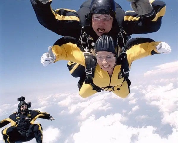 Answering these questions for starters! Secondly, I like to experience life to its fullest and I've never shied away from interviewing a despot or someone in the remote regions of Afghanistan or elsewhere. I've checked off quite a few things on my bucket list already, including doing a skydive with the Army's Golden Knights at 13,500 feet.