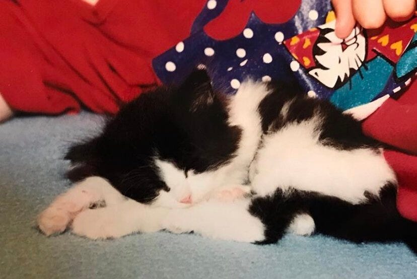 It all started with the faintest mew. I was eight years old sitting in my living room watching Saturday morning cartoons, when I began to hear what sounded like a kitten meowing from our backyard. Dismissing it as part of the show, I went back to my Scooby Doo reruns. But then I heard it again, louder each time. That’s when I decided to get a second opinion. I called my dad over. As the semi-professional animal rescuer of our cul-de-sac, he would know what to do. The mew had evolved into a full blown meow, and my dad sprang to action with a carrier, some wet food, and some gloves. Two hours later my dad and I had successfully rescued a precious three-week old kitten that had been hiding behind our air conditioning unit. She was malnourished, covered with fleas and struggling with an eye infection. She wanted to be rescued...and she chose us. I watched my dad gently give her a flea bath, which revealed her beautiful black and white coloring. She almost looked like a little bumble bee, with thick black stripes and a tiny black tail. As she looked up at me, I knew we would be inseparable from that moment on. Up until that spring day, we had been a dog family. My parents had volunteered with our local SPCA chapter and helped rescue and adopt out dogs to good loving homes. But here, in this moment, we had our first cat and she was all mine. I christened her Suzette, because once she was bathed she looked like a little princess and that’s the kind of name eight-year-old me thought princesses had. That tiny kitten lived a long and fruitful life of 13 years where she was the unspoken queen of our home. Seeing my dad that day inspired me to begin my rescue journey, and now 27 years later, I have had the honor of helping many dogs and cats in need.